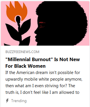 Yes, we are all so damn tired and in debt, but that pain and exploitation are stratified across various identities, which is why we need more diverse voices in this conversation. I’m glad to see there was a broader follow-up to Petersen’s point of view. I understand that one article can’t speak for us all. Because for me, black burnout is different.